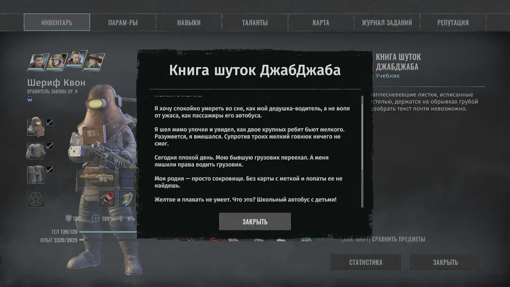 Развею обстановку серьезности и замечу, что юмор в Wasteland встречается наравне с суровостью, и он здесь прекрасен и, преимущественно "черный": как в записках, так и диалогах. "В 1984 году на жителей Нью-Йорка напал зефирный великан. Правда или нет?".