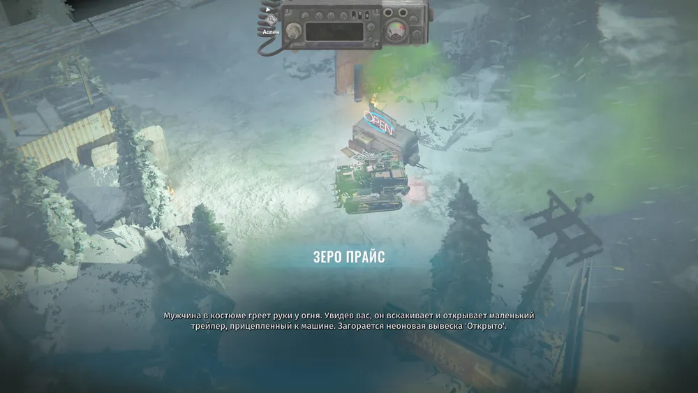 Я писал, что красота игры кроется в описании и повествовании, но это не значит, что с графикой имеются проблемы. К визуалу нареканий нет, другое дело, что я не тратил время на рассматривание пейзажей ледяной пустоши - все внимание мое было сосредоточено на заданиях и битвах, а еще размышлениями, чью сторону выбрать в этом конфликте. Замечу, что кровь, трупы и жуткие картины постапокалипсиса художники и дизайнеры передали правдоподобно и сочно. Спецэффекты в битвах хороши: от пылающего огня до взрывов плазменной пушки, жаль только нет разрушаемости. Прекрасно выглядит карта мира, когда мы путешествуем на Кадьяке, и даже не сама местность, а эффекты: то и дело сверкающие молнии, медленно садящиеся на землю радиоактивные облака, заснеженные домики местных фриков.