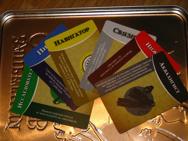 Карты. Выполнены из очень приятного материала, по сути - пластик. Карточки действий, ролей и артефактов хороши, но не более - очень качественная печать, хорошие иллюстрации.
