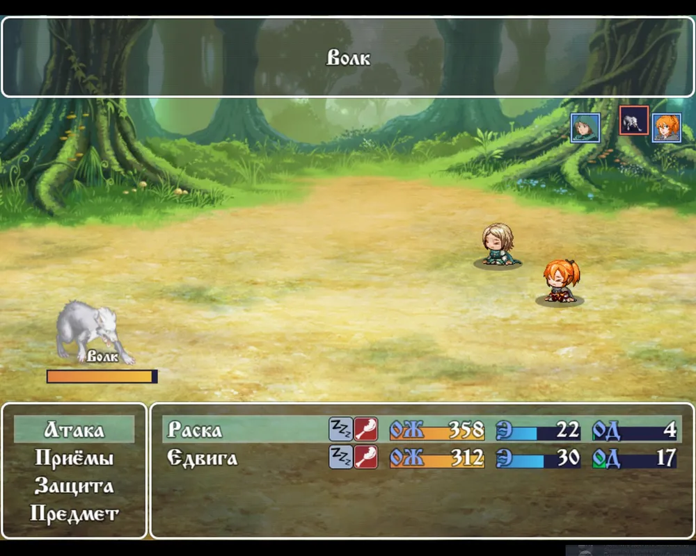 Дальше, впрочем, повествование несколько выправляется — Раска бежит из деревни (этакий аркадный сегмент по избеганию бегающих на пути собак) и уже на глобальной карте встречает другую девушку — Едвигу. Вместе они идут по следам раскиной бабушки в город Миром.