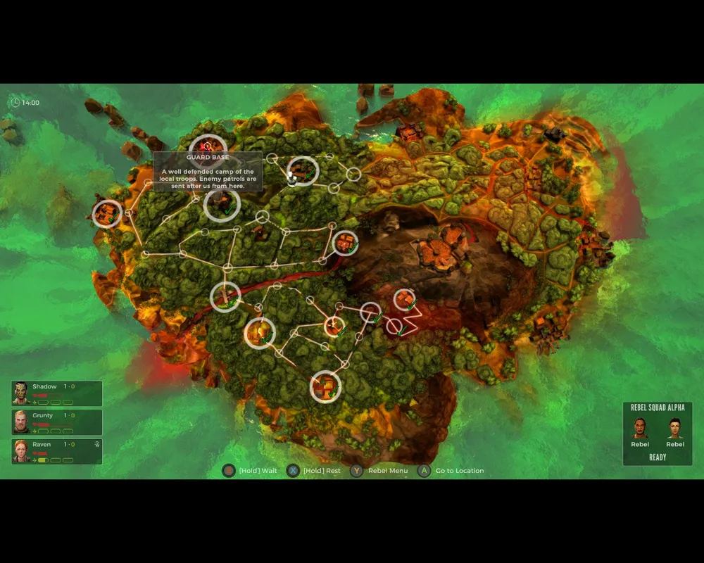 Так что придётся выживать. Выполнять миссии для сопротивления, а также собирать оружие и припасы. И за состоянием самих наёмников следить — обезвоживание, инфекция, невыпеченные вовремя раны — всё это влияет на их боевые способности не в лучшую сторону. Заниматься ранениями (а также улучшать оружие) можно только на отдыхе, который требует времени. А с вражеских баз тем временем отправляются патрули…