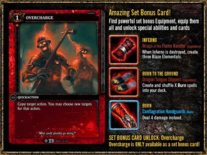 Еще один аспект РПГ в HEX - снаряжение, которое вы получаете во время приключений, оно улучшает персонажей (карты) и разнообразит игровой опыт. Победы в сражениях, сундуки и квесты – это лишь часть путей добычи снаряжения. У снаряжения есть 4 степеней редкости.