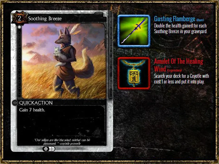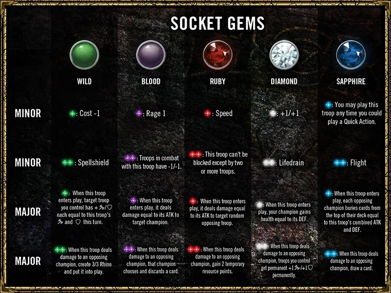 Камни могут давать такие улучшения, как уменьшение стоимости, способность полета, возможность взять дополнительную карту, когда улучшенная карту атакует, и многое другое.