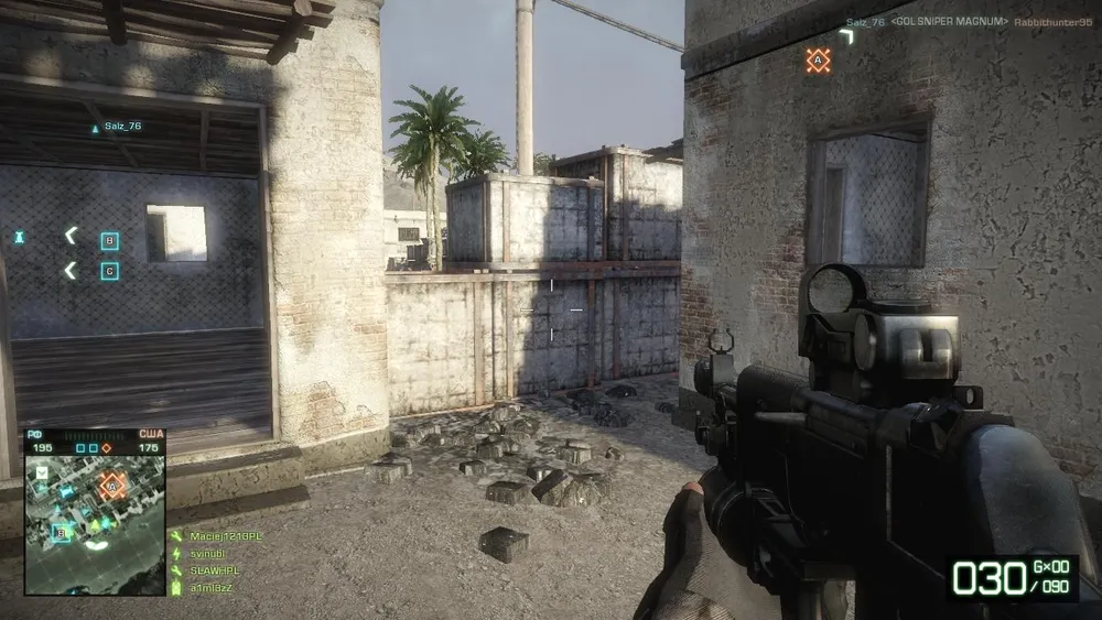 Разрабы порасставляли на карте много домов и защитных сооружений, одно из которых вы видите ниже. Так что вышло немного тесновато - узкие коридорчики и дома вокруг мешают сориентироваться.