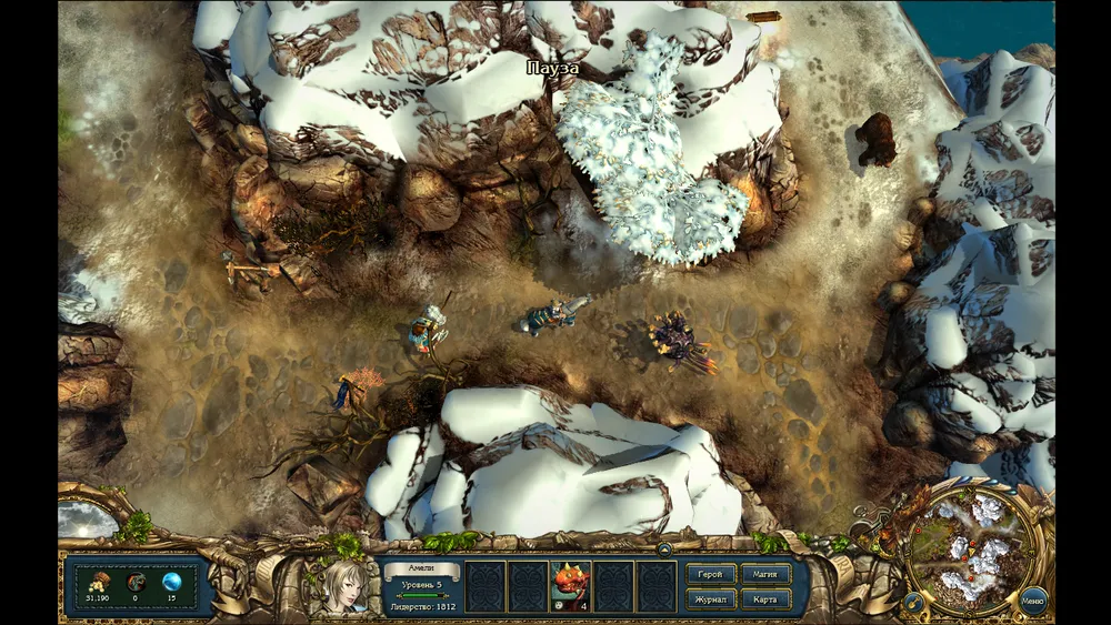 Так же есть в игре "Пауза". Да-да, обычная Пауза. То-есть, вы останавливаете игру и вольны делать с персонажем что угодно. Прокачать навыки? Прекрасно! Магию какую-то изучить? Да запросто! Сменить расположение отрядов или переодеть вещи, чтобы противника легче было победить! Да хоть стол весь изотрите мышкой, враги будут так же стоять, а игровое время не будет начисляться. Это очень удобно, если же хотите пройти игру за маленькое количество дней или в особо опасной ситуации, когда на тебя напало три врага с разных сторон и ты в растерянности не можешь найти выход из ситуации.
