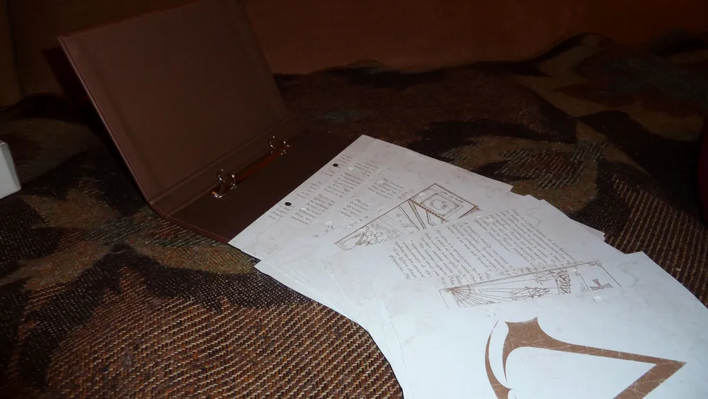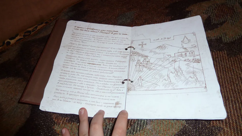 Дневник Альтаира сделан из кожаного переплёта и содержит в себе множество страниц истории его жизни. Там много страниц и это полезная вещь для фанатов. Есть что почитать.