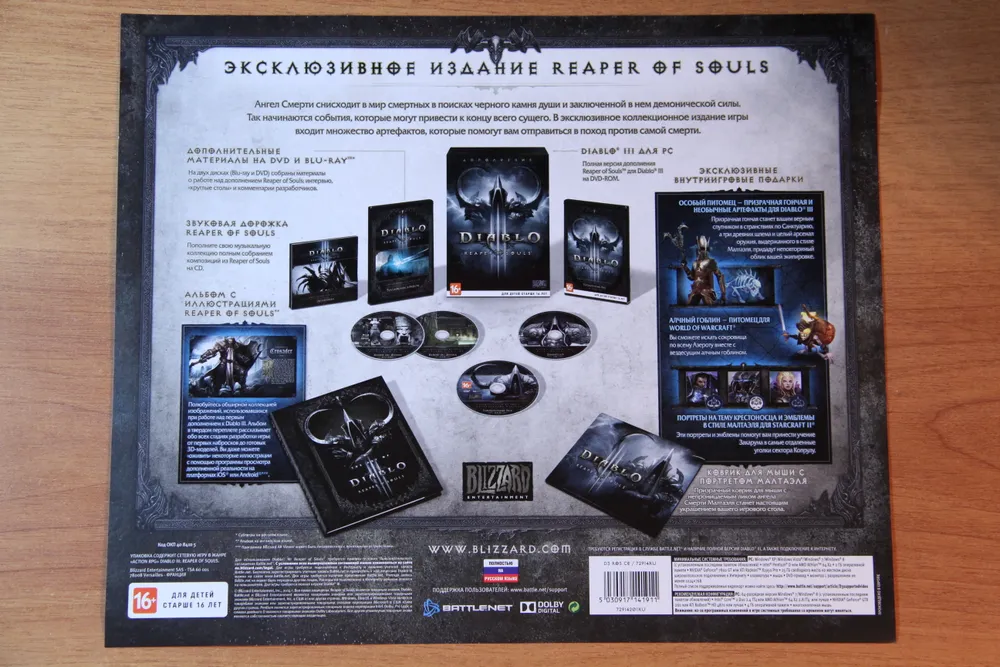 Издание похоже на все, что близзард выпускали ранее, но и имеет свои уникальные моменты. Стоит ли говорить, что оно редко в нашей стране? Предзаказ был ограничен, и после ни одной коробки не осталось в магазине, как это бывает с другими коллекционками. *Только пару дней назад видела watch dogs и assassins creed 4 в розничной продаже* На некоторых сайтах можно найти русский вариант игры, но уже куда по более высокой цене.