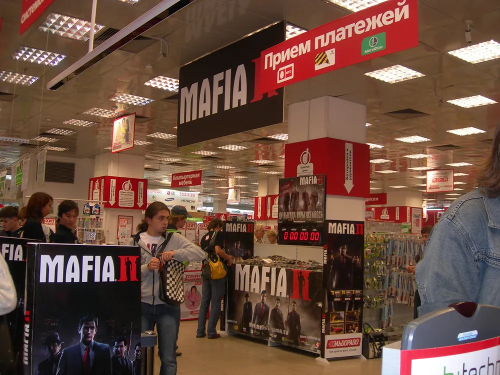 Премьера Mafia 2 прошла в нескольких магазинах Москвы и других городах России. Решиться куда ехать было довольно сложно, но в конце концов я решил ехать в Эльдорадо. Короче где поближе. Премьера прошла удачно, но был один минус - мало коллекционок. Как я уже говорил в рецензии на саму игру: "ПремьераMafia 2 очень похожа на саму игру. Большая очередь, огромный ажиотаж, 8 лет ожидания, премьера, начало продаж, коврики, эксклюзивные фото, и... всего 10 коллекционок на 50-60 фанатов".
