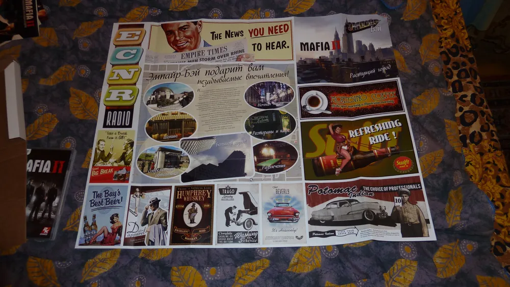 Постепенно приближаемся к самому главному - артбуку. Сейчас перед нами карта города. Она двухсторонняя. Карта и реклама Эмпайр Бей. По началу это действительно стоящая штука, но к концу mafia 2 вы уже сами хорошо будете ориентироваться в городе. Вы уже сами будете знать где магазин или автомастерская.