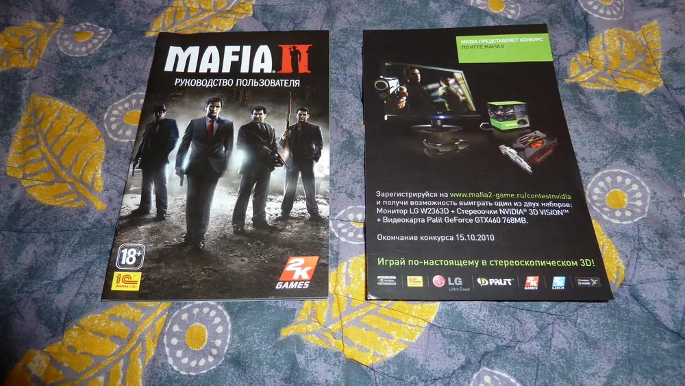 Комплект предварительного заказа вышел за месяц до выхода самой mafia 2. В него входит: реклама вечеринки в честь выхода игры в клубе persona grata (естественно уже прошло), скидка 200 рублей на dvd бокс и коллекционное издании игры, видеоматериалы и металлический зажим для денег с логотипом игры. Вот уже действительно качественная штука. У меня 2 предзаказа. Один как всегда купил в 1С, а другой выиграл на презентации mafia 2 на пятницкой улице. Подробно об этом можете почитать тут.