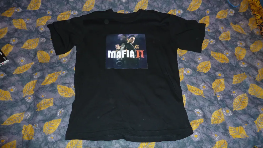 Дальше в шкафу, где также лежит футболка со вторым ведьмаком и xbox с ИгроМира 2010 года лежит футболка с mafia 2, но уже не от туда, а из союза. Сделанная на заказ за 800 рублей. Конечно не официальная, но всё равно красивая. Я одобряю!