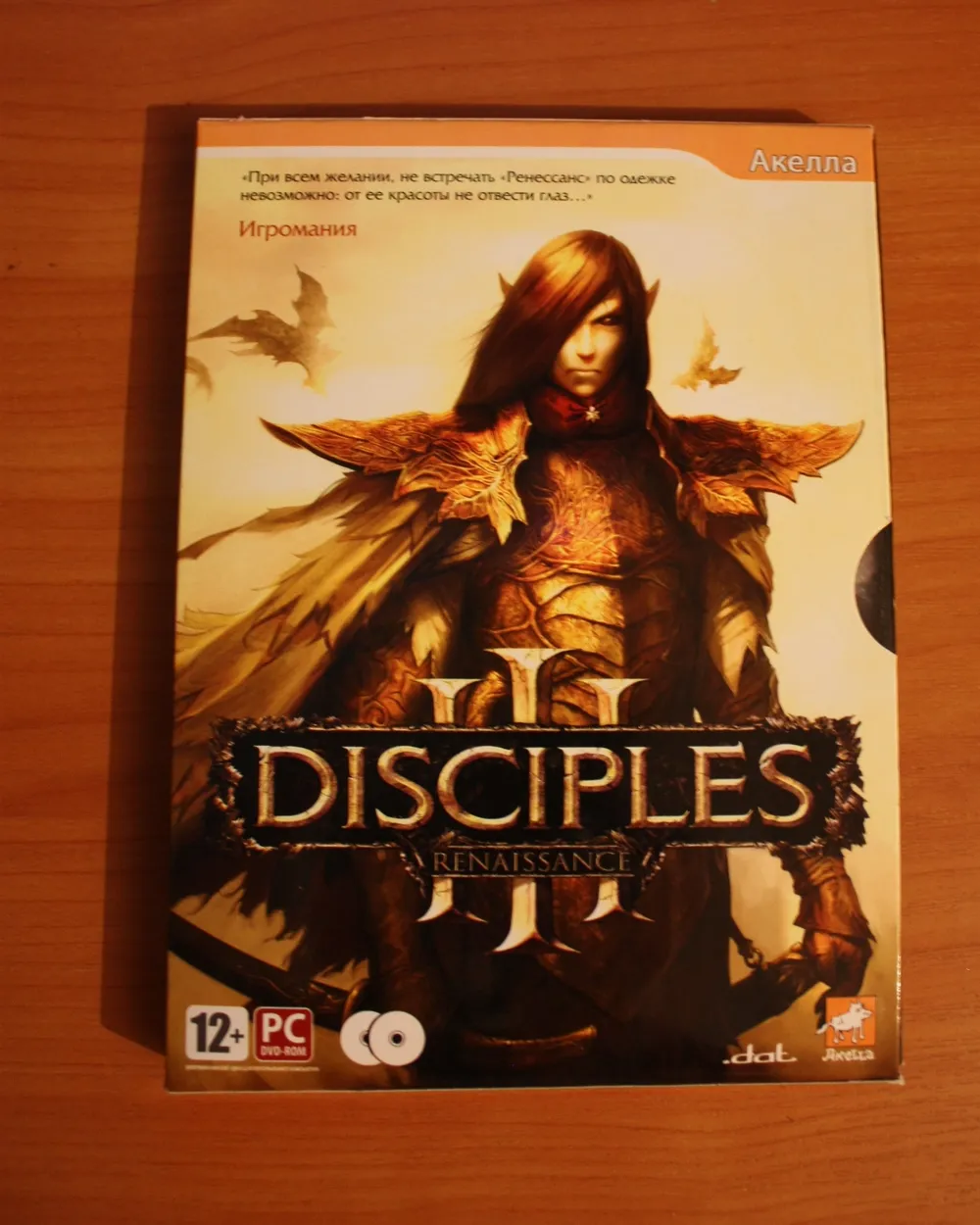 В прошлом году Акелла ударными темпами выпустила на рынок огромное количество дорогих коллекционок – Alone in the Dark, Assassins Creed, Left4Dead и еще несколько великолепных коробок. В этом году ударные темпы снизились – Left 4 Dead 2, Disciples 3 и… И все?! Да, но не совсем – у Disciples 3 коллекционное издание представлено в трех вариантах –“Эльфийский Союз”, “Легионы Проклятых” и “Империя”, которые отличаются друг от друга обложкой, фигуркой и футболкой. Я приобрел эльфийское издание, которое мне приглянулось. Фотографии содержимого других коллекционных изданий ищи под спойлером в конце обзора! Вот обложка моей коробки: