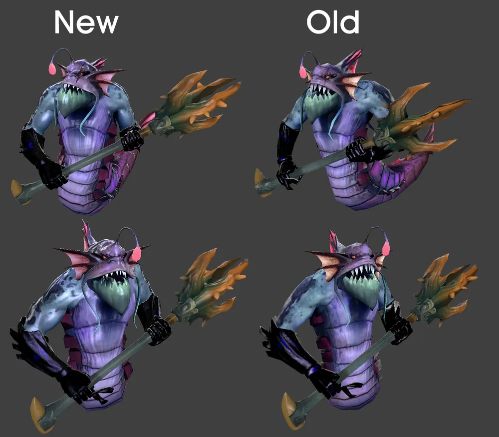 Для начала были обновлены лица героев, а именно у Slardar, Huskar, Drow и Earthshaker.