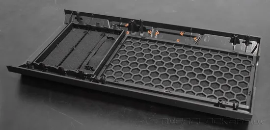 Передняя пластиковая панель крепится на шести пластиковых защелках и при желании ее легко можно снять. Все фронтальные сетчатые поверхности прикрыты плотными пылевыми фильтрами, у решений серии Xpredator эти фильтры являются несъемными.