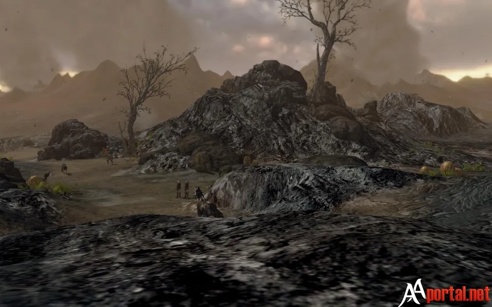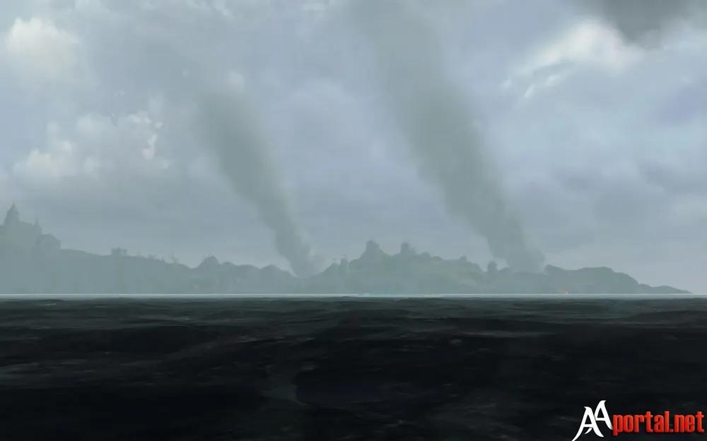 Эту локацию мы увидели ещё в самом начале игры, когда находились на Полуострове Солзриид. Там, с побережья, мы наблюдали как где-то в туманной дали поднимались к небу несколько облаков дыма, выходящих из жерл вулканов. Как можно наблюдать на большой карте – сюда проще добраться вплавь, чем скакать на лошади обходя залив. Но я буду рассказывать всё по порядку.