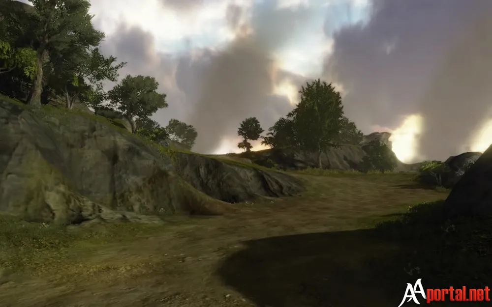 Вход в эту локацию расположен на востоке Двух Корон в ущелье около города. Тут стоят каменные ворота, охраняемые закованными в сталь стражами, а за ними находятся баррикады. Это сразу же настораживает! Хотя дальше опасения начинают постепенно сходить на нет. Мы проходим по дорожке, находящейся на приличной высоте над уровнем моря и разглядываем чудесный пейзаж.