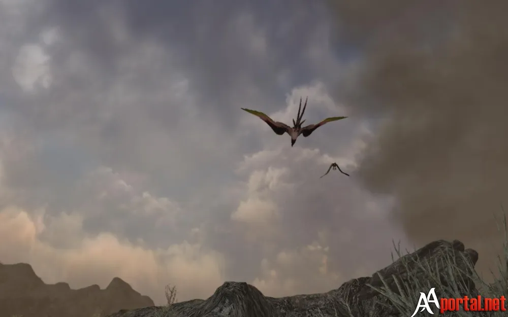 Тут я увидел первых летающих монстров – это были большие стервятники. Самое интересное, что они имеют разную высоту полёта, но всё равно небольшое впечатление неестественности этих птиц оседает на душе. Эти птички являются самыми безобидными врагами, которых можно встретить в этой локации. Также тут водятся огромные скорпионы.