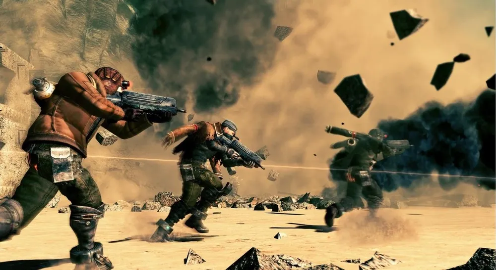 Чем дальше вы продвигаетесь, тем очевиднее становится простая истина: без живых напарников пройти Lost Planet 2 просто невозможно – большая часть заданий заточена именно под нескольких игроков. Искусственный интеллект пытается вам помочь всеми силами, но обилие задач и постоянные атаки врагов просто не дают AI-бойцам сосредоточиться на наиболее важных вещах. К примеру, в одной миссии вам нужно вырубить особо крупного песчаного червя, обстреливая его из водруженной на движущийся поезд огромной пушки. Сделать это в одиночку невозможно в принципе. Чтобы собирать снаряды и стрелять (одновременно исправляя разные механические поломки), нужно как минимум двое, а лучше трое живых компаньонов. А компьютерный помощник вряд ли окажет вам необходимую поддержку. Акцент на кооперативное прохождение очень силен. В Lost Planet 2 можно ассистировать друг другу, вместе кататься на роботах, делиться энергией и оружием