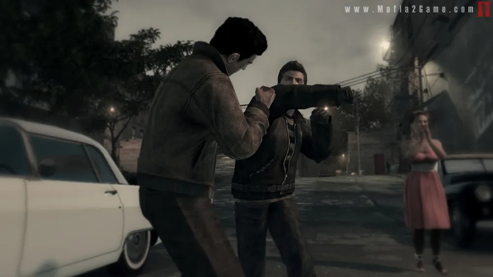 История берет старт в 1945 году, и вы знакомитесь с Вито Скалетта, сыном итальянских иммигрантов. Он вместе со своим острым на язык лучшим другом Джо ищет быстрейший способ сорвать куш. Дуэт начинает с малого: ограбление ювелирного магазина, продажа на черном рынке бензиновых талонов, работа на «некооперативных» докеров… Ну и так далее. В какой-то момент ставки начинают расти. И вот уже Вито вместе с Джо доказывают, что у них хватает наглости и смелости замочить парня просто потому, что мафиозо платит бабло. Иногда Вито смотрит на это со стоицизмом, иногда его вызывающее поведение делает из него отличного лидера. Он и его соратники не набор итальянских карикатур, а крутые и обладающие моралью люди, которые следуют принципам. Эти принципы могут выглядеть варварски для большинства людей, но обеспечивают четкую линию поведения внутри «семьи». Mafia II никогда не даёт заднего хода, изображая будничное насилие. Будь то хладнокровное убийство, задание «без лишних вопросов» или жесткая экзекуция, движимая гневом Вито - убийства обычно сопровождаются лужами крови и предсмертными проклятиями. Зато Вито и Джо как законченные гедонисты купаются в алкоголе, девушках дорогой недвижимости, даже не думая посвятить себя какой-либо высшей цели. Именно об этом Вито постоянно напоминает Джо и тут стоит признать честность протагониста.