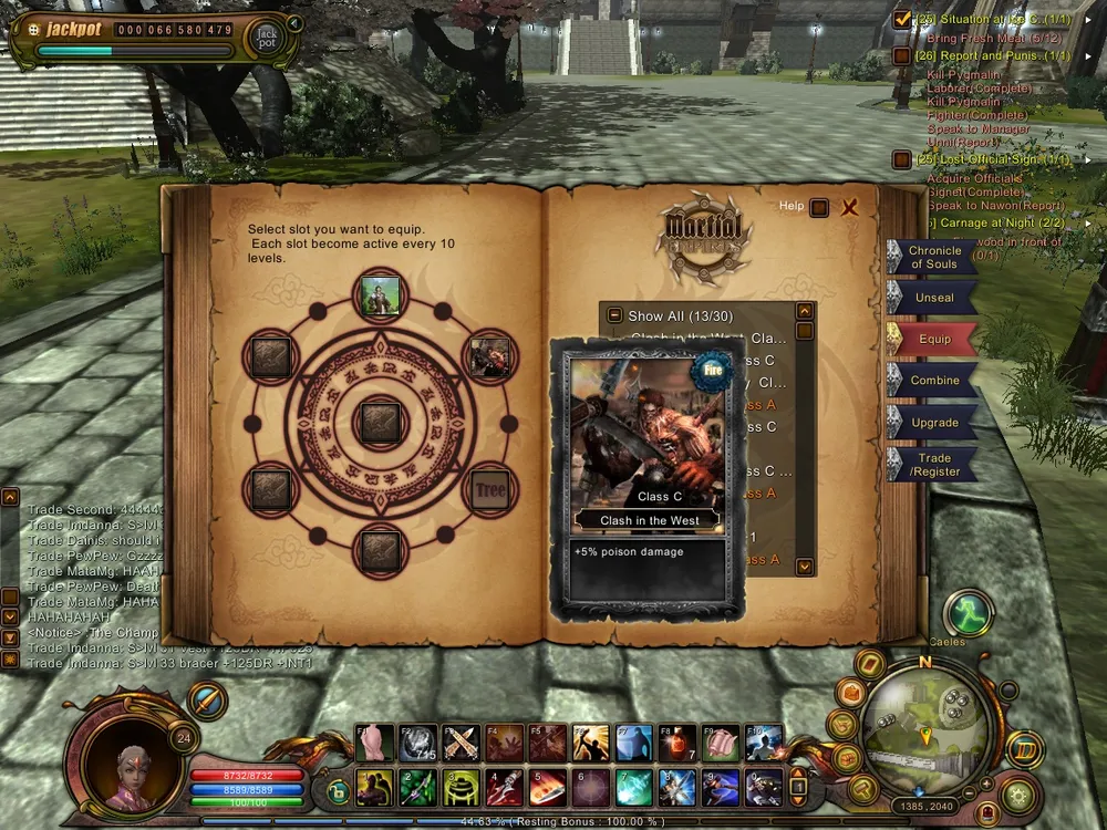 Помимо всего этого классического набора, 7 Souls также предлагает несколько интересных нововведений, а именно: систему страниц душ, джекпота и куб. Под страницы душ отведена специальная книга. Черт ее знает, почему они там появляются и каким образом, но каждые 4 часа книга пополняется одной или несколькими страницами (в зависимости уровня). Страницы эти дают серьезные и несерьезные прибавки к характеристикам и способностям, и отличаются по уровню и типу элемента. Соответственно, их можно вставлять в слоты, которые открываются каждые 10 уровней, комбинировать, обменивать и даже продавать. Этакие символы из World of Warcraft, но несколько более сложные.