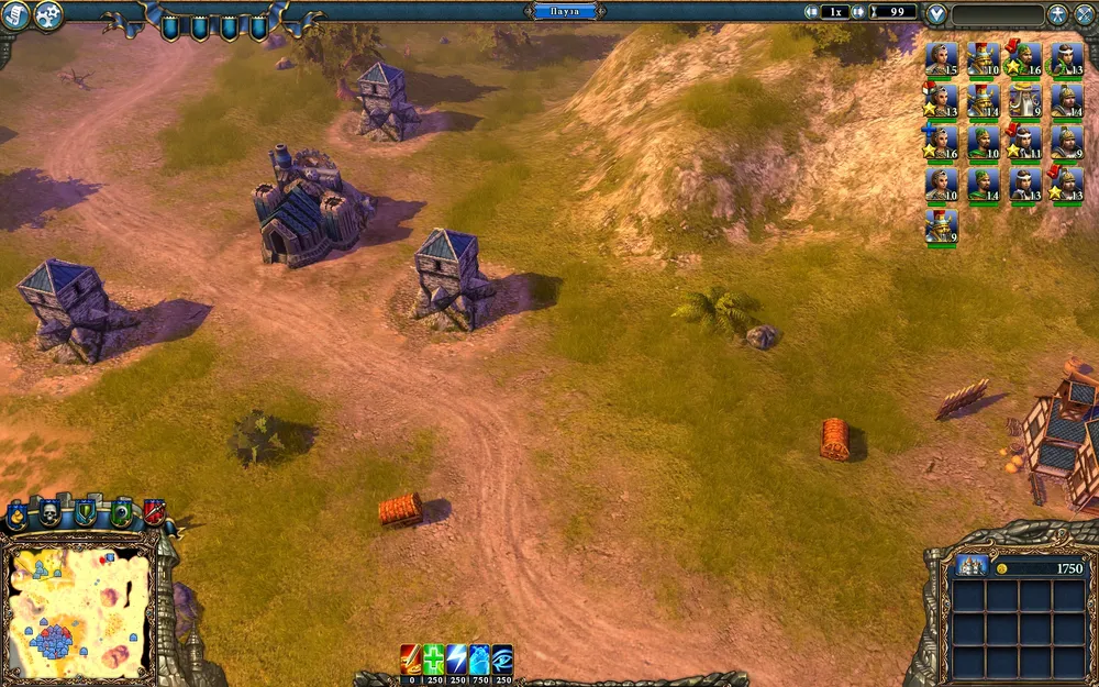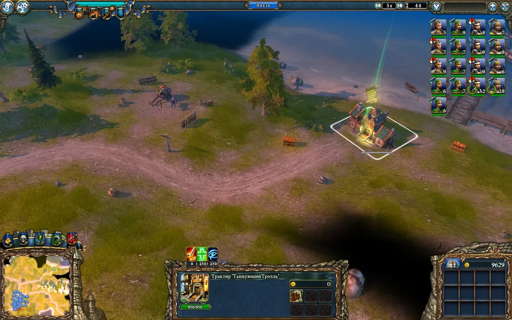 Обычная миссия...зачищаем всю округу и только тогда бежим в левый верхний угол строить башни. Приготовьте пару тысяч для флагов защиты. Единственное слева меня скелеты по началу парили...снесите их побыстрее :) Торговые посты лепите сразу.