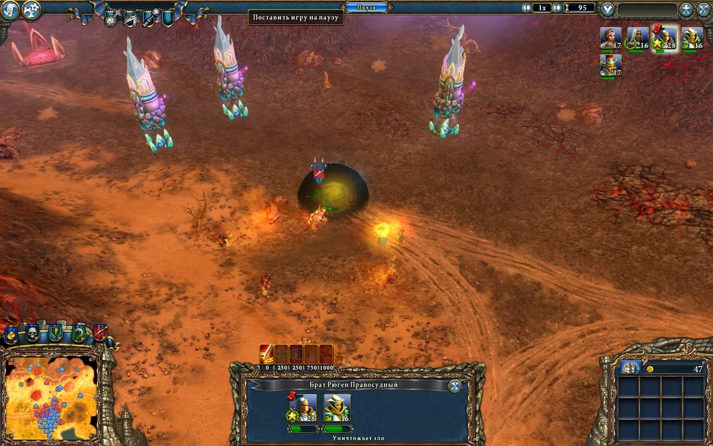 В начале советую разнести все жилища чудовищ и демонов вокруг. Но при этом оставить парочку. Чтоб героям было где качаться. А дальше миссия чем то похожа на короля скелетов. Тоже на 80 день прибежит к вам сам. Единственное не один, а с элемами. Поэтому советую снести их жилища. Проблема в том что он бродит рядом с ними. Я отвлек демона в сторону при помощи 1 пати и пары магических башен. Демон без постоянно спавнящихся элемов не так страшен. Но всеравно затащил во многом благодаря своему накаченному лорду паладину + гномы.
