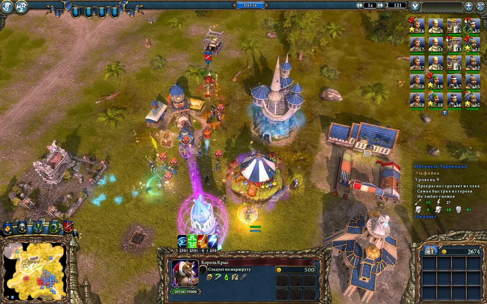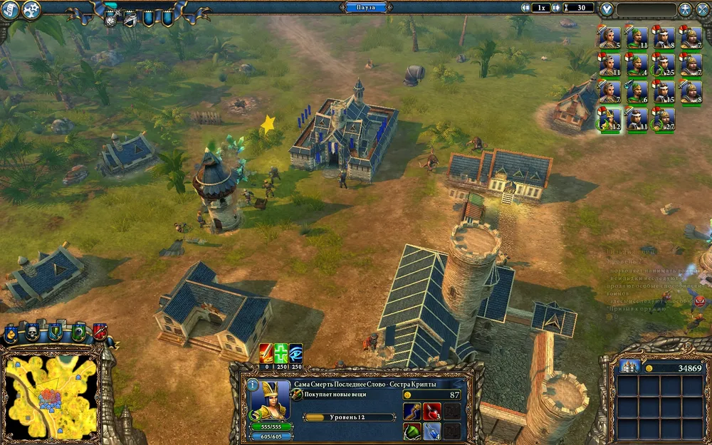 Реально задолбала эта миссия :) Находится между 2 противников не просто. Пробовал массу вариантов развития используя разные наборы героев и лордов, но захлебывался. Паладины и послушницы слева становятся все мощнее и их быстро не убить. Даже башни не справляются. Сверху эльфы и роги - это очень большой дпс. Смог пройти при помощи раша. Сделав гильдию разбойниц, скаутов и палату лордов начал мутузить паладинов. От эльфиек отбивался башнями и скипетром Сидриана. При помощи разбойницы 30 левла очень хорошо рашатся паладины. Эльфиек не решился долбить т.к. там башни помощнее. Вобщем снеся им гильдию воинов, рынок, гильдию послушниц и храм дауроса оставил их без всего по сути. Сносили ессено лорды. Поэтому нужны деньги. Что примечательно походу комп не думает даже отстраивать снесенное здание. Поэтому вынеся палов до конца вздохнул спокойно. Правда на месте палов начнут бродить толпы демонов. Но даже простая башенка с ними справляется. Дальше дочистил карту и добил эльфииек с разбойницами. Башни гномов хорошо мочат дохлых эльфиек и разбойниц.