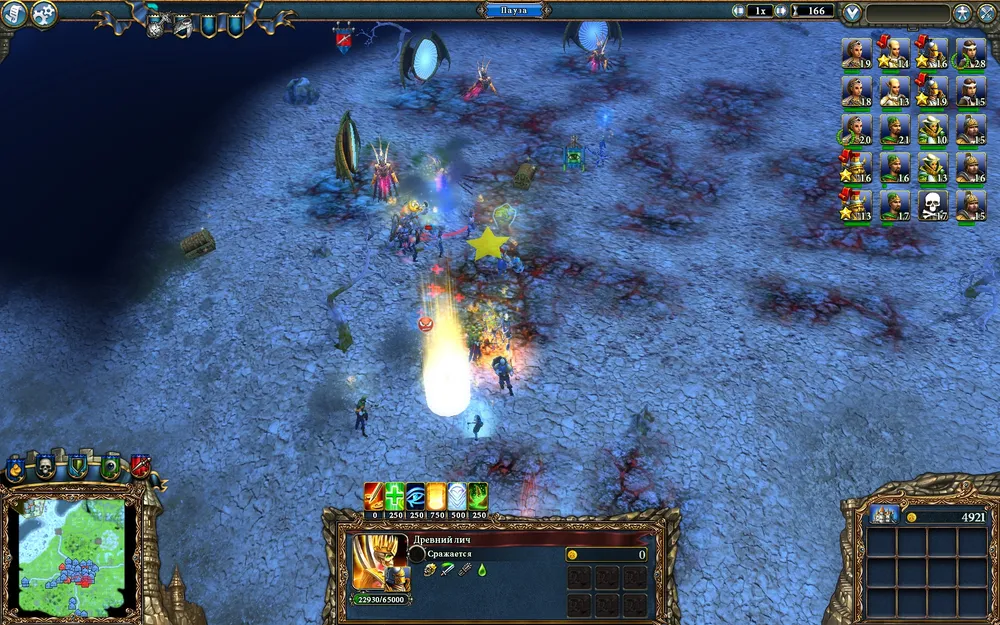 Битва против нежити. Поэтому послушницы и паладины ваши лучшие друзья. В начале советую побыстрее дойти до послушниц. Можно даже по 2 гильдий и изучить абилку против нежити. Далее ничо сложного. С личем вышло как то по труднее. Я просто не заметил что там есть толстый лич с 65к хп...думал все одинаковые поэтому почти все там снес. Правда со 2 раза. Пришлось после 1 замеса ресать героев заново :) А так по идеи можно и зафокусить..хотя не факт. И да гномы, опять гномы наши лучшие танки.