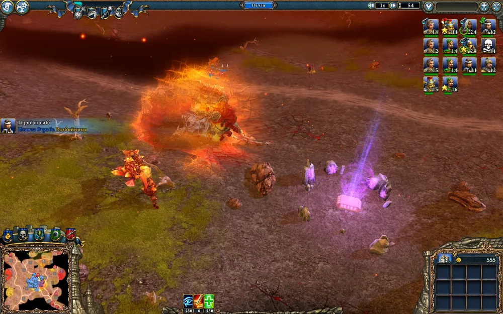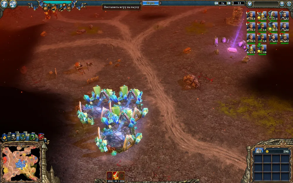 Нудная и геморная миссия. Одна из главных проблем для меня это вечные вылеты. В целом она напряжная своей нудностью. Т.к. 100к очень долго бить, а развитие до храмов это блин стока денег что огого. Даже не смотря на стартовых 50к. Важно как можно быстрее вынести жилища монстров особенно порталы элементалей. Артефакт юзаем только один - корону. Одна из фич это отпуливание демона при помощи короны. Т.к. демон бежит к нему где бы вызванный дух не находился и даже если его при этом лубцуют. Чем больше героев тем лучше...