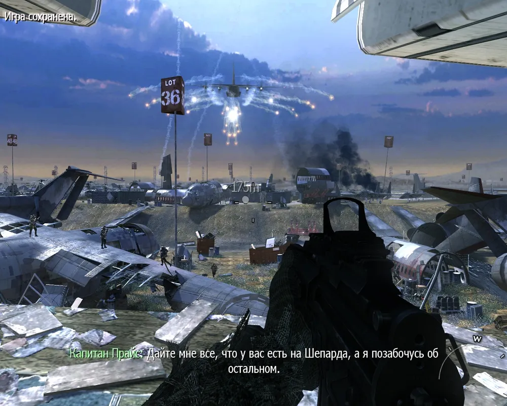 1С перевели игру в лучших традициях пиратов. Как у нас теперь переводится «Ghost»? Правильно «Гоуст»! А «Meat»? «Мит», да. К счастью, капитана Прайса трогать не стали, хотя я почему-то ожидал увидеть кого-нибудь вроде «капитан Цена». Почему так сделать? Есть подозрение, что 1С хотели не нарушать технику lip sync (проще говоря, синхронизации движений губ и произношений слов голосом компьютерных персонажей). Да только кто в игре обращает внимание на лицевую анимацию? Особенно если учесть, что большинство диалогов ведётся по рации. Но это ещё не самый большой минус локализации. Вырезали целый уровень, который является для сюжета достаточно важным. Да, тот самый, где Макаров сотоварищи перестреляли в российском аэропорту кучу гражданских. Детям такое смотреть нельзя, видимо, и пусть на игру стоит рейтинг 18+ - всё равно нельзя. В общем, localization by «Тяп-Ляп ltd.», ©, all rights reserved.
