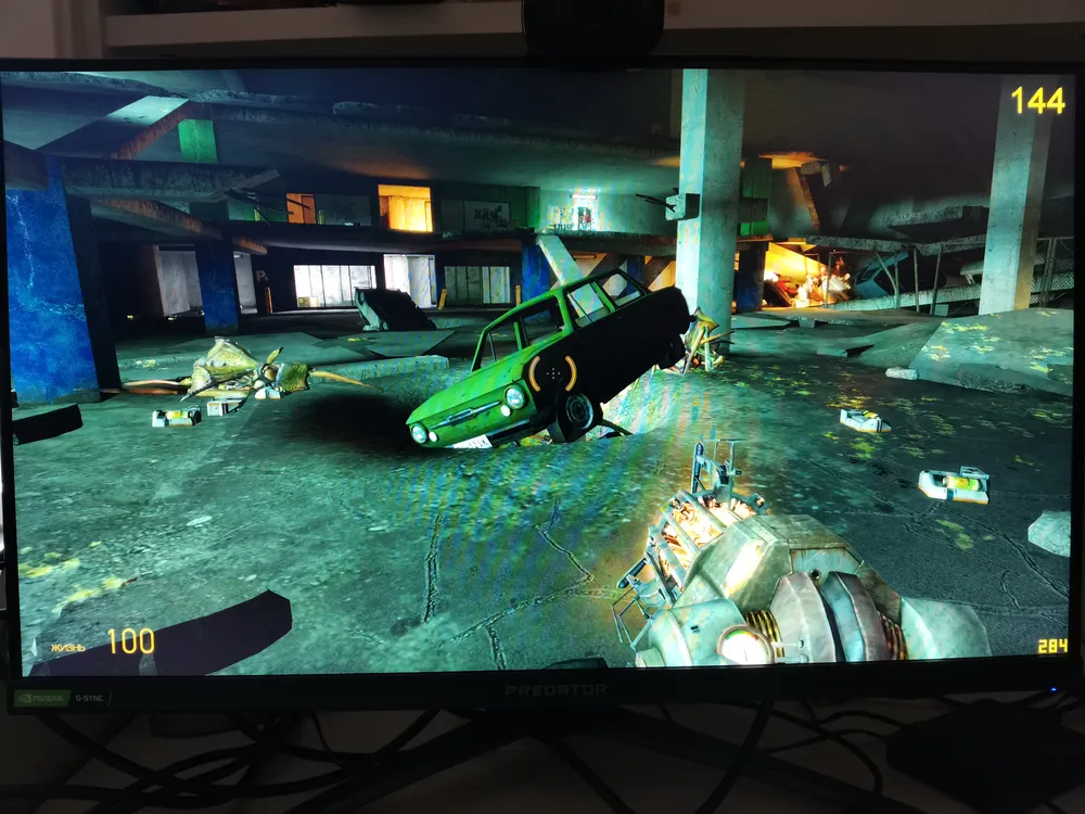 Старичок Team Fortress 2 в этом плане держался ровно и показывал высокое значение кадров в секунду. Также я включил аппаратное отображение скорости матрицы (оно выводит в верхнем углу). Это позволяет дополнительно удостовериться в том, что монитор сейчас работает при 144 Гц. До того, как я поменял в драйверах настройку на значение 144 Гц, там было только 60 Гц. Программные показания Fraps даже зашкаливают в такой старой игре.