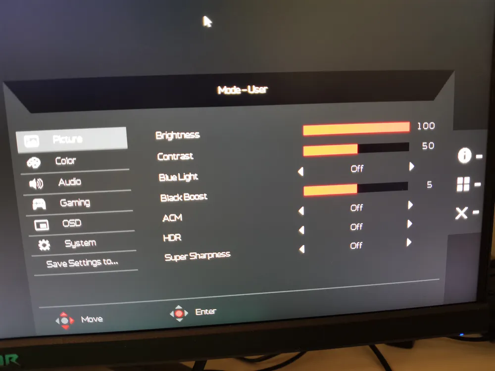 В первом разделе можно изменить яркость и контраст, активировать динамическую контрастность, усилить передачу чёрного цвета (Black Boost) и внести коррективы в цветовую температуру с помощью параметра BlueLightShield (напоминает режим «защиты зрения» на смартфонах). Здесь же можно активировать режим HDR и технологию Super Sharpness (повысить резкость).