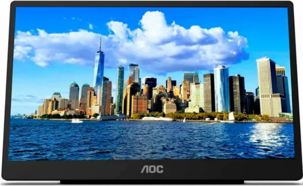 Монитор АОС 16T2 обладает IPS-матрицей, диагональ которой насчитывает 39.6 см. Модель обладает разрешением в Full HD, она может соединяться с ноутбуками, мобильными телефонами, серверными машинами и ПК. Передача изображения происходит по USB-C через Micro HDMI и DisplayPort.