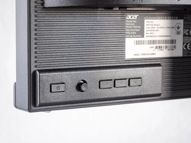 Из интересных внешних элементов можно отметить блок управления экранным меню. Обратите внимание, что на XB252 есть еще одна кнопка включения — если первый тумблер напрочь вырубает подачу питания на трансформатор, то вторая кнопка просто пробуждает монитор. Рядом с ней есть еще три софт-клавиши и пятипозиционный джойстик.