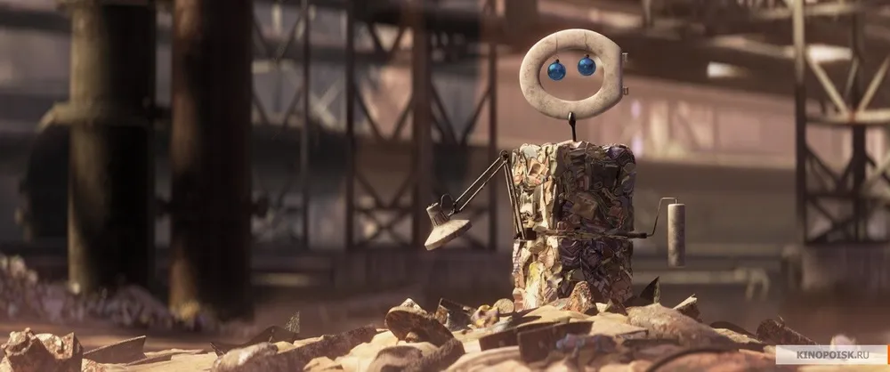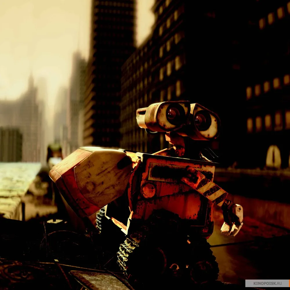 Повествует сей, не побоюсь этого слова, шедевр о нелегкой жизни робота-мусороуборщика WALL-E (см. выше расшифровку).