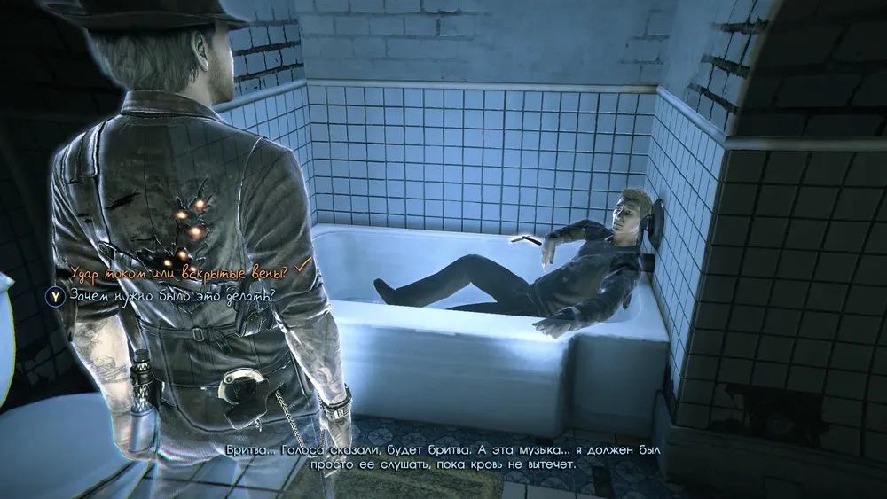 Собственно, вернёмся к базису. Дело в том, что мысленно я себе уже напридумывал гениальные решения, которых можно добиться в таком сеттинге, но, как оказалось, сразу после пролога игра резко втапливает педаль тормоза, и начинается очень медленное повествование, и по сути вся игра превращается в одно сплошное: "найди все улики в комнате и иди дальше". Собрав все улики, нам обычно предлагают сопоставить их, и если всё сделали правильно, то увидите флешбек, показывающий, что произошло в комнате. К сожалению, как в L.A. Noire не получится, что ошибившись с выводом, герой в итоге заваливал дело, и игра при этом шла дальше. Здесь вроде как тоже дают всего три шанса на ошибку, но при этом и вариантов выбора редко бывает больше трёх-четырёх.