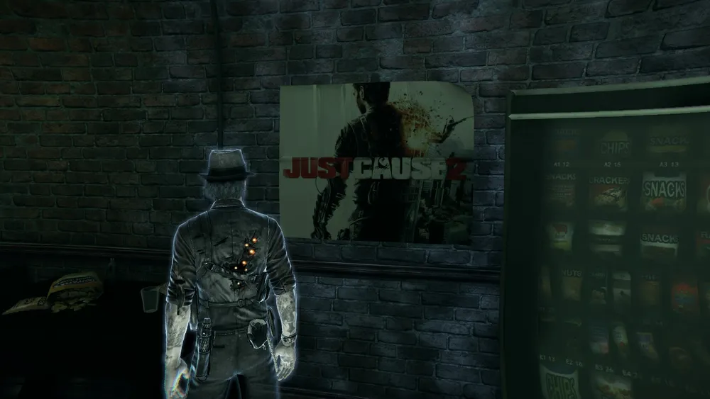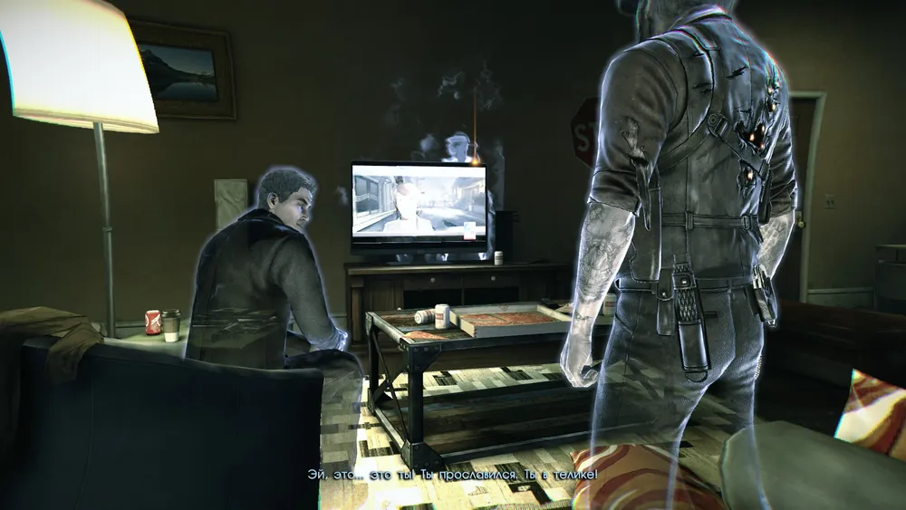 Однако не заметить, что эти же самые разработчики просто не знали, что делать со свалившимся им на голову призраком-героем, тоже нельзя. Здесь, например, герой может воздействовать на электро-приборы. Выражается это тем, что мы можем внезапно включить телевизор или принтер, чтобы отвлечь человека, да пару раз, чтобы приманить и спрятаться в нём, потому что некоторые проходы здесь перекрывают демонические ловушки, которые хватают героя и затаскивают его прямо в ад, а внутри человека можно комфортно пройти мимо. Но и это используется всего дважды. И больше ничего. Никакой там помощи полиции, включая им изображение убийцы на мониторах видеонаблюдения. Никаких там электрических замыканий в тормозной системе автомобиля, чтобы скинуть вражину с обрыва. Ух, сколько "Ливня" и просто экшена можно было бы сделать при желании, но почему-то ничего этого нет.