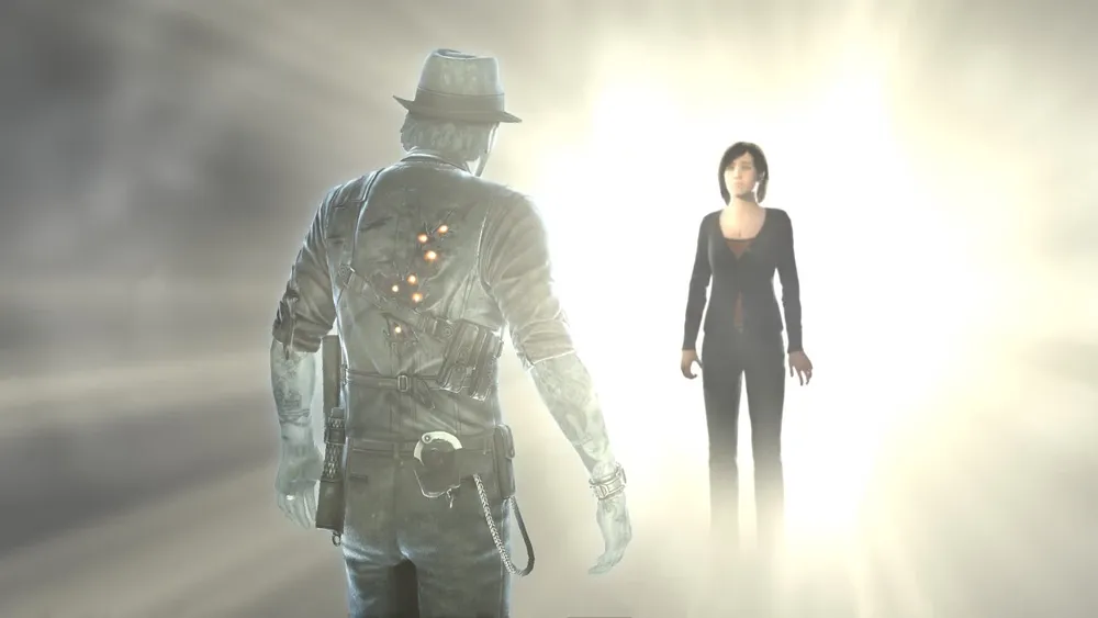 Зато игра очень хорошо удалась в той детективной части, что посвящена воссозданию образа города, населяющих его людей и произошедших событий. По крупицам восстанавливать жизнь Ронана и искать тот поворотный момент, когда он из реального бандита стал законопослушным копом, очень интересно. Узнать, кто убийца, раньше сюжетного раскрытия тоже очень дорого. И очень приятно в конце ошибиться насчёт того, кто убийца, но не до конца, а лишь чуть-чуть. Да, конечно, сюжет не гениален, но и каждого из вас он скорее всего удивит своим Deus Ex Machina. Разработчикам действительно удалось создать достоверный мир, в который веришь. Этот мир тлена и безысходности. Его населяют живые и призраки, причём среди мёртвых обитателей Салема однозначных персонажей нет. Можно ли сочувствовать девушке, которую убили соседи, потому что она их довела бесконечными пьянками и громкой музыкой? Или девушке, которая совершила самоубийство, потому что считала, что парень ей изменяет, и теперь не даёт ему жить, хотя всё совсем было не так? Атмосфера уныния царит здесь буквально везде – куда ни кинь взгляд, повсюду можно увидеть призрака с унылым ликом или даже целую семью: дворяне, крестьяне, шахтёры, дворецкие, пьяные автомобилисты, умершие от чумы, убитые из мушкетов. Они тут повсюду, но стоит подойти поближе, как морок рассеивается, но вот на берегу всё также лежит затонувший паром, а вагоны когда-то сошедшего с рельс поезда действительно встречаются по всему городу. Как и колодки для публичного наказания. Как и виселицы для публичной казни. Мелочей в игре очень много. Обратите внимание на фантом сигареты, с которой умер Ронан во время того злополучного похода на чердак. Эта сигарета теперь часть героя, и хотя он регулярно от неё избавляется, она всегда оказывается на месте: то зажатая в руке, то сжатая губами. За судьбой этой сигареты тоже очень интересно следить, так велико внимание разработчиков к деталям.