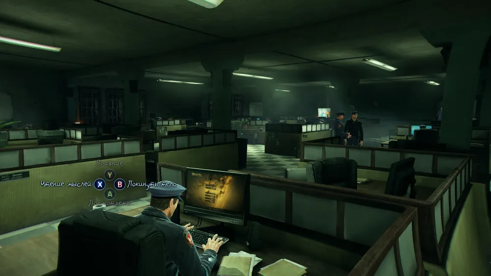 И вся игра такая. В рамках сюжета это потрясающая история часов на десять-двенадцать, на один сезон обычного такого американского сериала про копов-призраков. Но в игре мы уже пятнадцатый раз наматываем круг по комнате, пытаясь найти ещё одну "не очевидную" улику, вселяемся в очередного свидетеля, пытаясь правильно "надавить" на его мысли, чтобы он вспомнил, что произошло, а в конце расследования делаем вывод, который позволяет посмотреть очередной ролик и перейти к следующему расследованию.