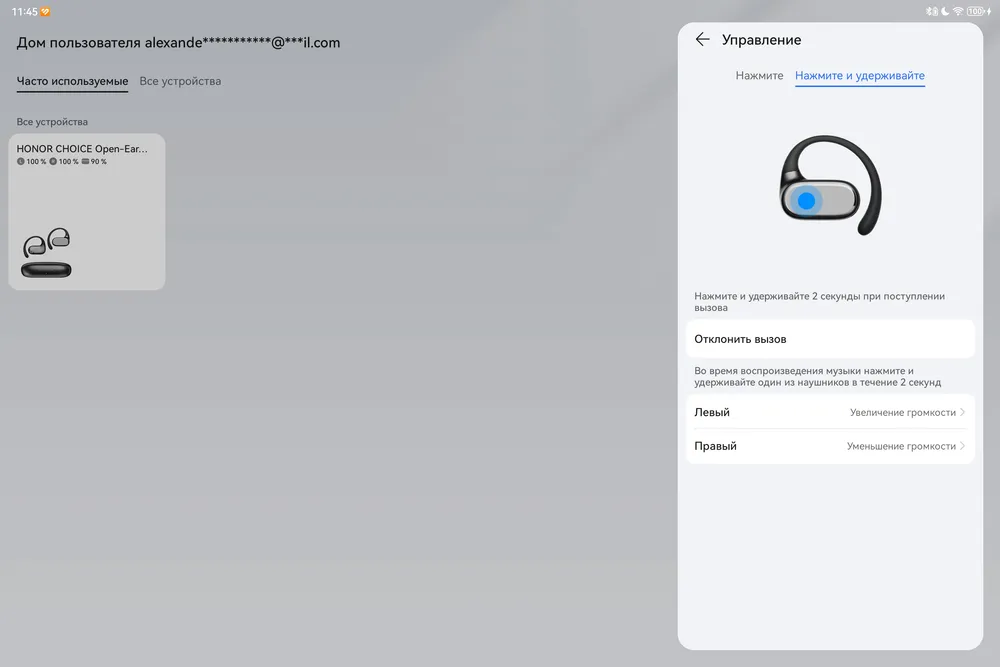 Настроек этих, правда, немного. Каждый наушник может реагировать либо на двойное нажатие, либо на долгое нажатие (2 секунды и более). При этом в случае вызова двойное нажатие — приём, а долгое — отклонить вызов. А вот при воспроизведении музыки можно выбрать реакцию на разные нажатия, причём отдельно для левого и правого наушников.