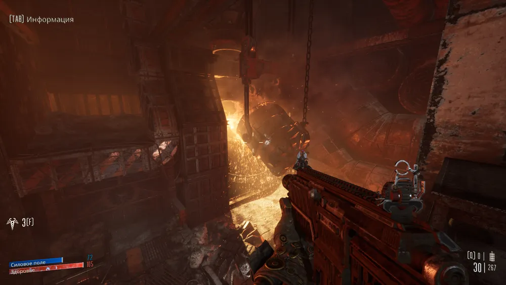 Есть в нашем арсенале и ближний бой. Оказавшись с врагом на расстоянии удара, мы можем нажать одну клавишу, активируя скрипт мгновенного и сочного убийства. Это красиво (до поры) и удобно, когда нужно учинить быструю расправу, но в сотый раз эти мелкие скриптовые сценки начинают раздражать, и я вспоминаю времена Call of Duty, когда врага можно было вырубить простым прикладом, без выкрутасов. Тем более, что сцена мгновенного убийства моба, в момент, когда его друзья в вас безостановочно палят, а вы неуязвимы, выглядит нелепо. Причем так можно замочить хоть шайку головорезов в одной комнате. В такие моменты темп игры снижается. Часто мы будем искать по карте лампы для починки древнего механизма, чтобы он открыл дверь или запустил лифт, отчего еще сильнее проседает темп. Один раз и вовсе встретилась небольшая головоломка, что ощущалось как чужеродный элемент игры.