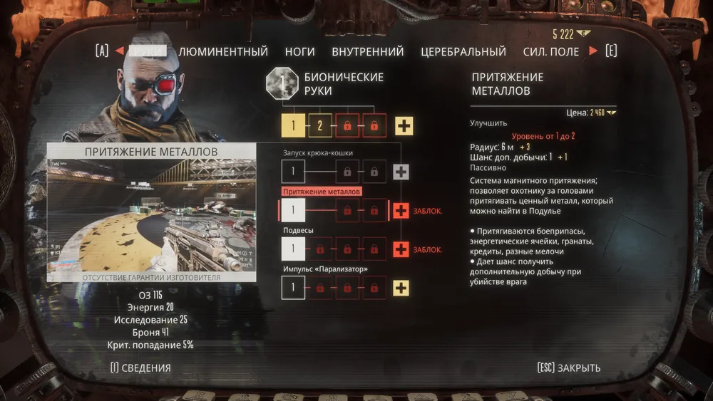Все эти деньги можно спустить в Martyr’s End. Больше всего вы отдадите медику, который модифицирует ваши аугментации. Я редко захаживал к торговцу оружием, потому все пушки доставал на миссиях: если прочесывать каждый уголок, то можно найти спрятанные сундучки, в которых лежат новое оружие и предметы улучшения. Третий персонаж, предлагающий свои услуги, это ктулхуобразный техник. Он добавляет примочки вашим стволам. Опять же, платные модификации оружия я не покупал, поскольку они дают существенные минусы, помимо преимуществ. Мне вполне хватало тех предметов улучшения, что я находил на миссиях.