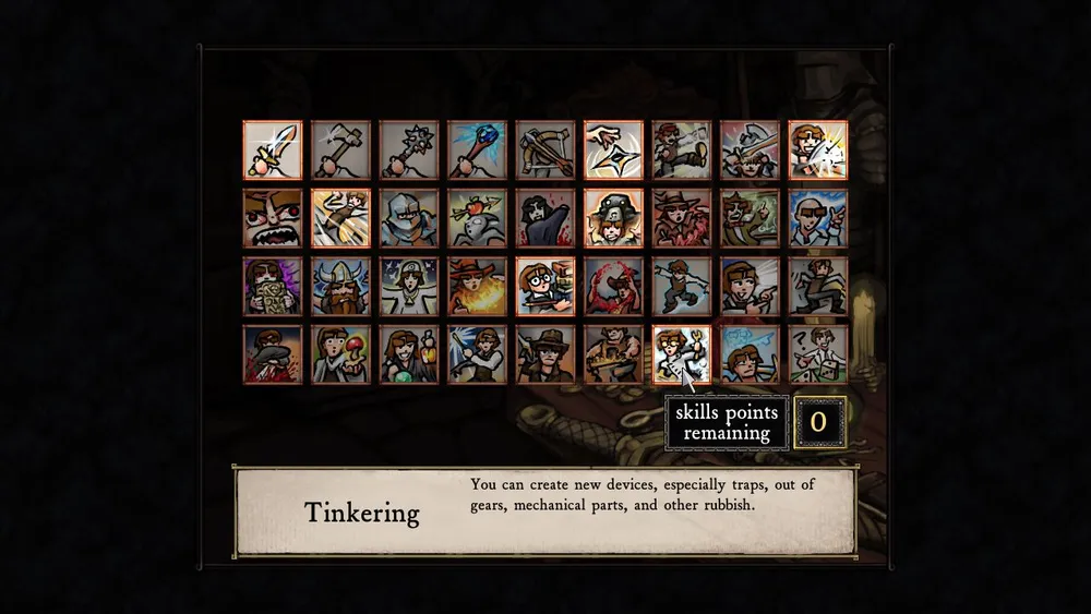 При создании нового персонажа вы должны выбрать 7 различных веток умений, каждая из которой обладает своими способностями. Всего в оригинальной игре 36 веток умений, а приобретя все дополнения вы откроете еще 16. Итого - 52. Тематика самая разнообразная: от вампиризма и безоружного боя до некрономикономики, коммунизма и боевого вегетерианства.