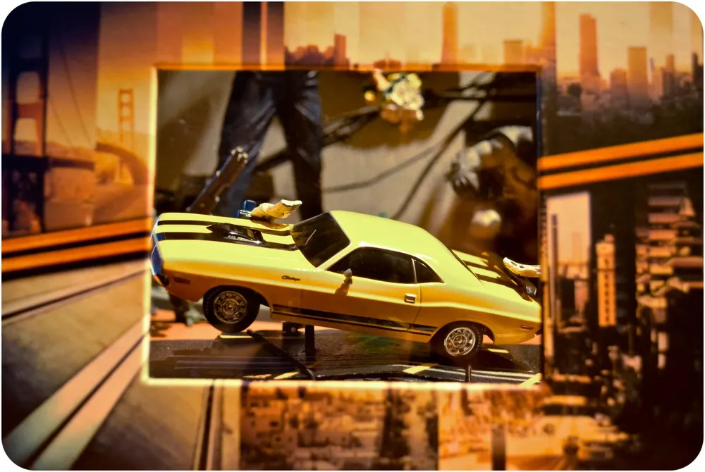 А теперь фотографии. Как вы заметили, основной компонент коллекционного издания - металлическая модель Dodge Charger R/T. Выполнена превосходно, тяжелая и красивая зверюга. Правда это скорее не модель, а фигурка - "поиграть" в неё получится, да и нет подвижных частей\прозрачных окон. Но это не минус, ибо модель просто красавица и теперь обрамляет мой геймерский телек, стоя на колоках вместе с Corvette Convertible `98. Установлена модель на бархатной подушечке, что только усиливает её красоту.