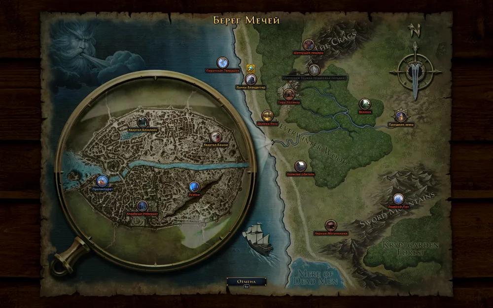 Мир в Neverwinter Online не бесшовный, и это явно показано на карте – отмечены основные крупные и не очень локации, чтобы перейти к ним нужно ними нужно добраться до ворот или другой точки перехода. Но тем не менее ограниченность мира здесь практически не ощущается – сами-по себе локации не маленькие, разнообразные по оформлению и наполнению: здесь вам и города, и крепости, и леса, и снежные горы, а не сплошные катакомбы куда не приди как в некоторых подобных проектах.