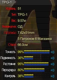 TPG-1 по ощущениям, лучше чем другие тяжелые винтовки, как при стрельбе, так и маневрировании от обстрела. По текстуре она немного меньше чем тот же Barret, что открывает дополнительный боковой обзор. Винтовка выхватывается очень быстро, что дает преимущество, если вы первым увидели врага.