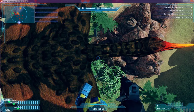 Первая волна, впрочем, переживается терпимо а вот следующие… Помимо обычных маленьких рапторов прилетают птеродактили, с легкостью поднимающие игрока в воздух, тираннозавры, одним ударом хвоста сносящие все здоровье и все это в большом количестве.