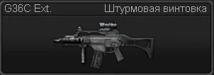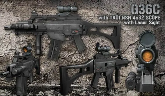 G36C - винтовка от немецкой фирмы H&K. Более компактная модификация своего предшественника G36. Обладает хорошей кучностью и скорострельностью. Винтовка оснащена оптическим прицелом и лазерным целеуказателем.