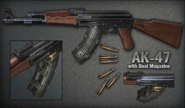 AK-47 - штурмовая винтовка созданная в СССР. Благодаря простому устройству, нелегально производится во многих странах мира. Обладает высокой надежностью и убойной силой, но короткая прицельная линия и сильная отдача негативно сказываются на точности стрельбы.