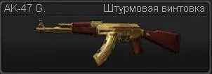 AK-47 G. - Следующая модификация AK-47 после Silver. Убойная сила этой модели оставляет далеко позади остальные штурмовые винтовки. Далеко не каждому штурмовику по карману AK-47 Gold, однако, средства затрачиваемые на него с лихвой окупаются.